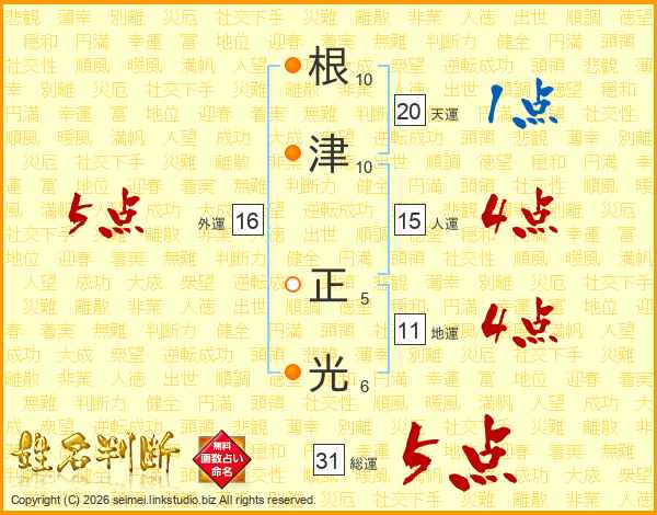 根津正光さんの総運は31画の5点!