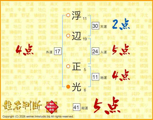 浮辺正光さんの地運は11画の4点!