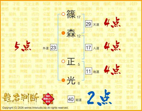 篠森正光さんの天運は29画の4点!