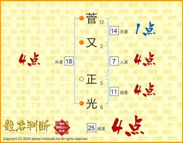 菅又正光さんの人運は7画の4点!