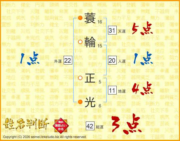 蓑(16画)輪(15画) 正(5画)光(6画)