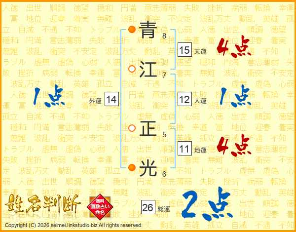 青(8画)江(7画) 正(5画)光(6画)