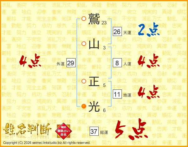 鷲山正光さんの総運は37画の5点!
