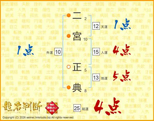 二宮正典さんの総運は25画の4点!