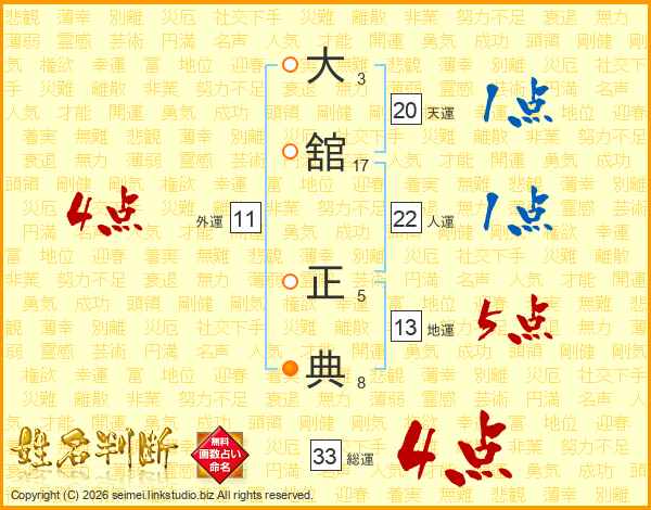 大(3画)舘(17画) 正(5画)典(8画)