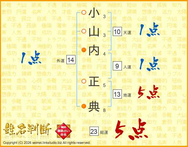 小山内正典さんの総運は23画の5点!