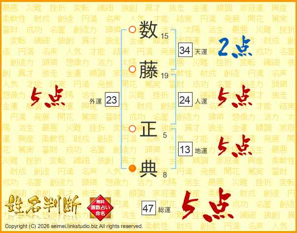 数藤正典さんの総運は47画の5点!