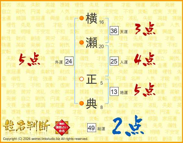 横瀬正典さんの人運は25画の4点!