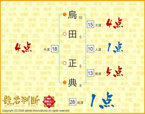 烏田正典さんの天運は15画の4点!