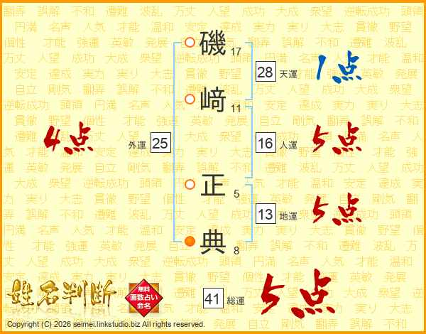 磯﨑正典さんの天運は28画の1点!