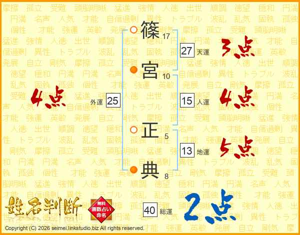 篠宮正典さんの総運は40画の2点!