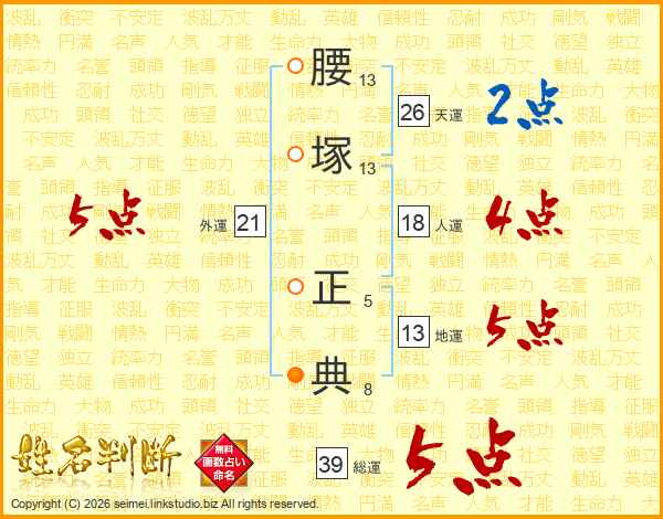 腰塚正典さんの総運は39画の5点!