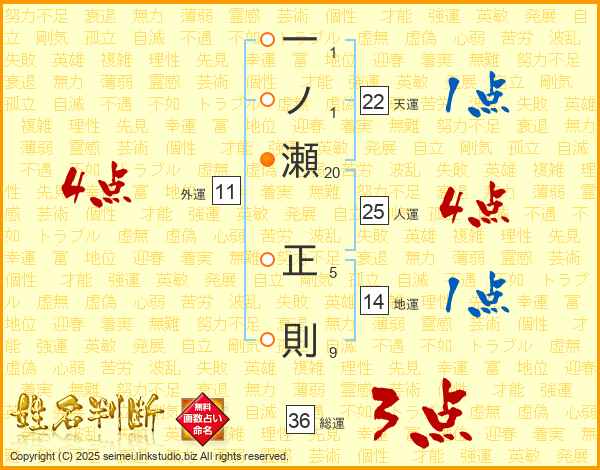 一ノ瀬正則さんの人運は25画の4点!