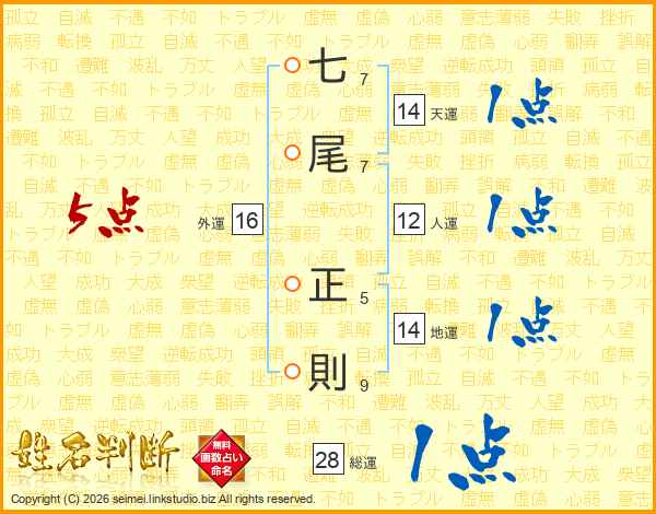 七尾正則さんの総運は28画の1点!