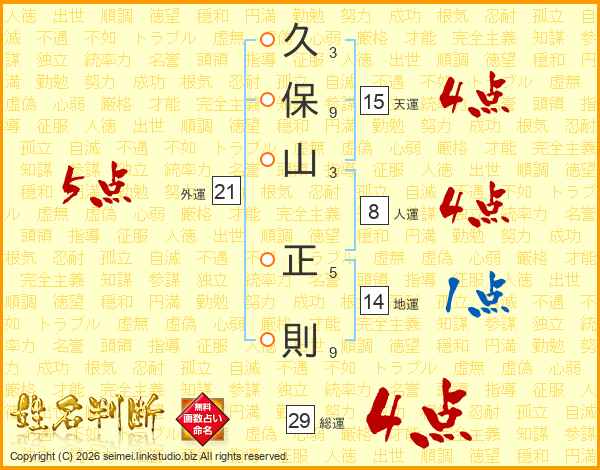 久(3画)保(9画)山(3画) 正(5画)則(9画)