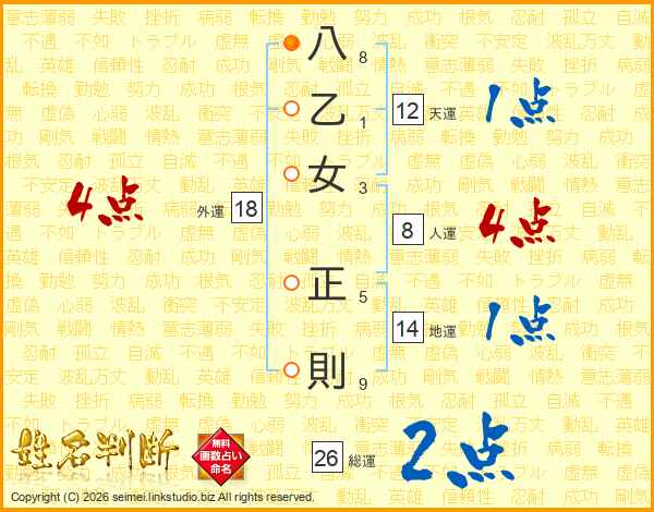 八乙女正則さんの総運は26画の2点!