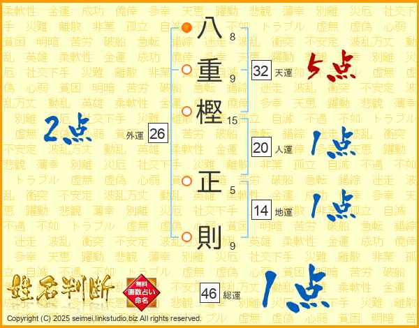 八(8画)重(9画)樫(15画) 正(5画)則(9画)