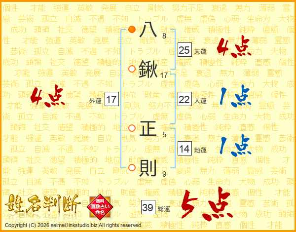 八鍬正則さんの天運は25画の4点!