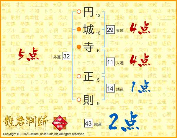 円(13画)城(10画)寺(6画) 正(5画)則(9画)
