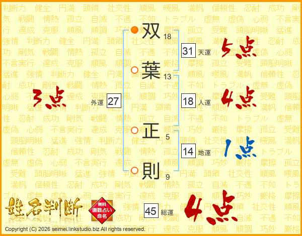 双葉正則さんの総運は45画の4点!