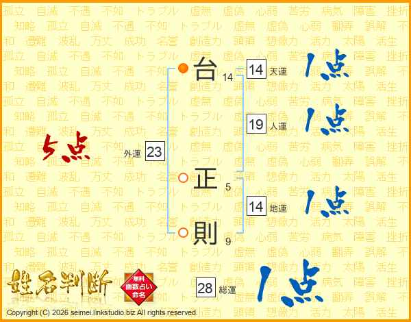 台正則さんの天運は14画の1点!