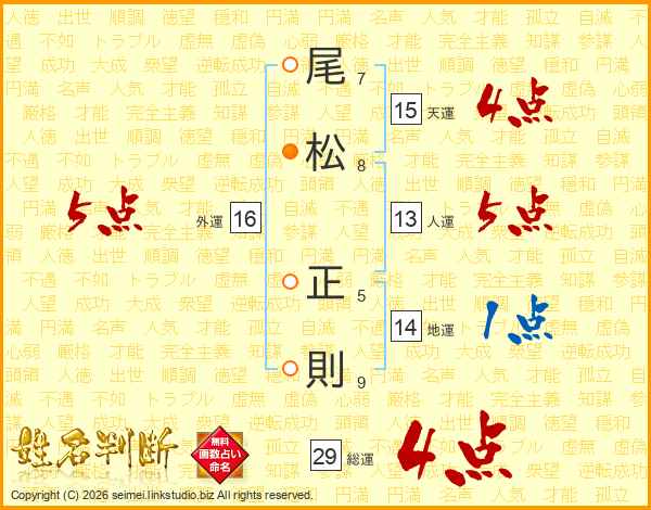 尾松正則さんの総運は29画の4点!