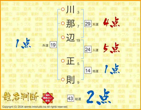 川那辺正則さんの総運は43画の2点!