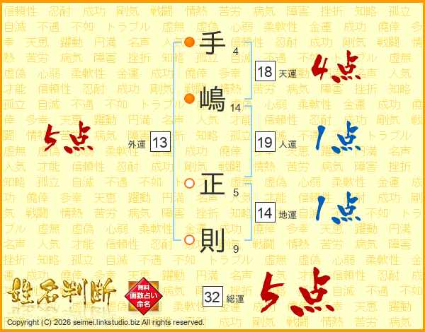 手嶋正則さんの総運は32画の5点!