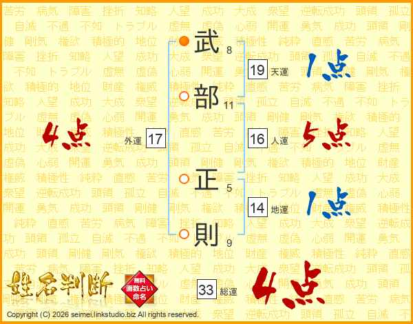 武部正則さんの総運は33画の4点!