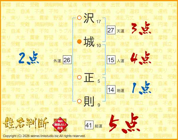 沢(17画)城(10画) 正(5画)則(9画)