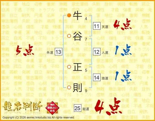 牛谷正則さんの天運は11画の4点!