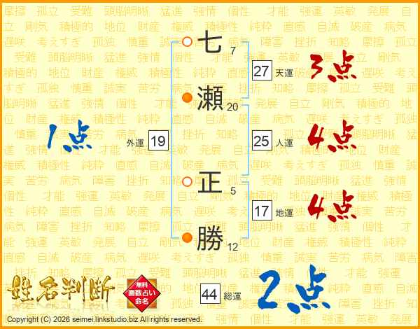七瀬正勝さんの総運は44画の2点!