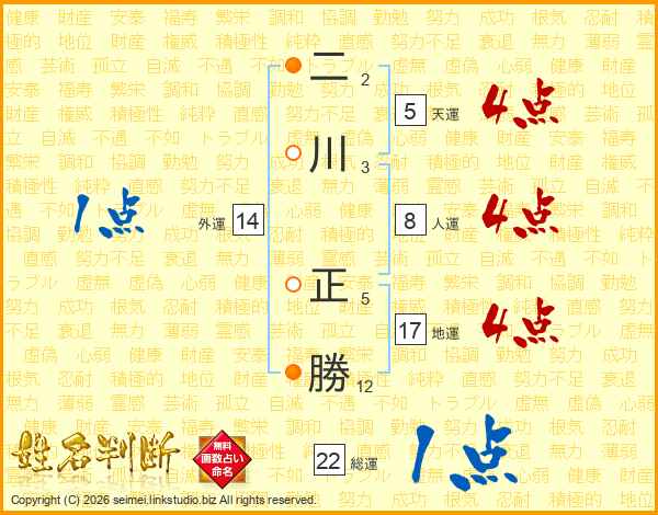 二川正勝さんの天運は5画の4点!