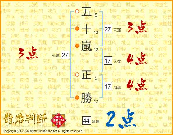 五十嵐正勝さんの総運は44画の2点!