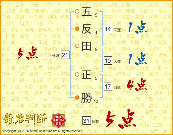 五(5画)反(4画)田(5画) 正(5画)勝(12画)