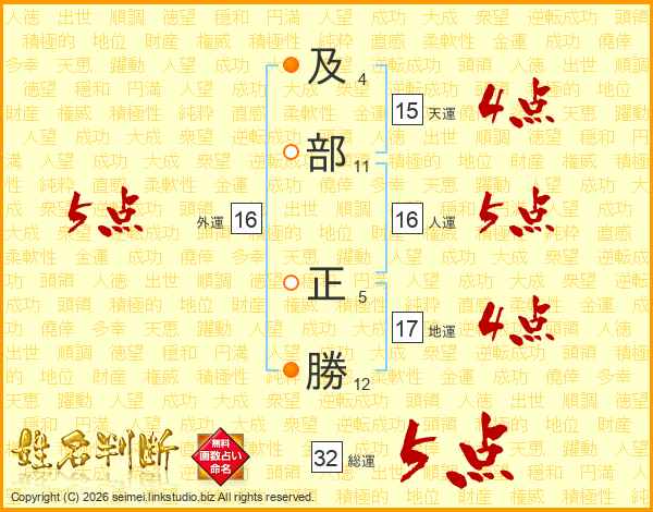 及部正勝さんの総運は32画の5点!
