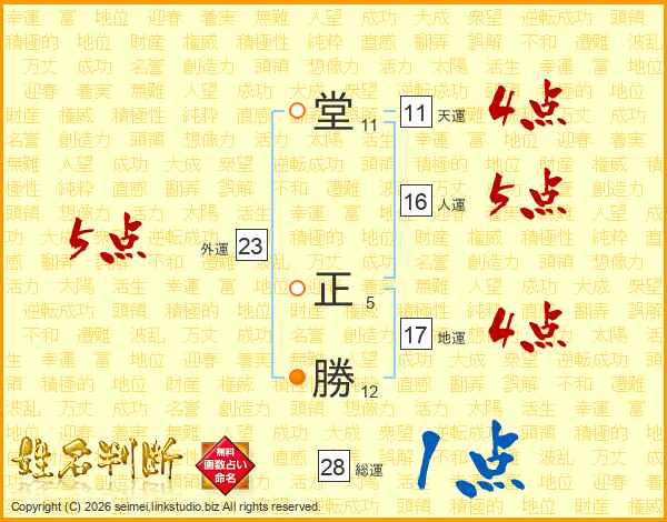 堂正勝さんの天運は11画の4点!