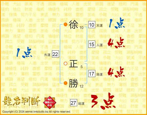 徐(10画) 正(5画)勝(12画)