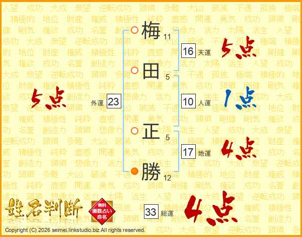 梅田正勝さんの総運は33画の4点!