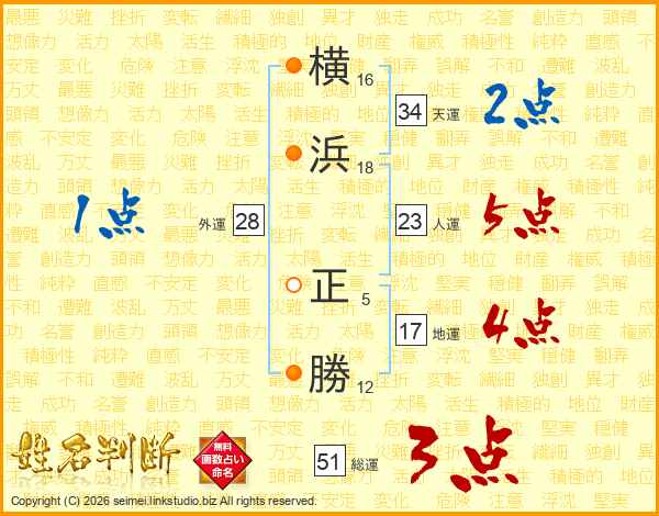 横浜正勝さんの人運は23画の5点!