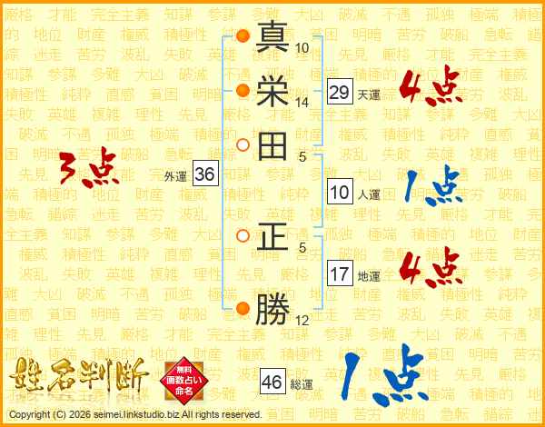 真(10画)栄(14画)田(5画) 正(5画)勝(12画)