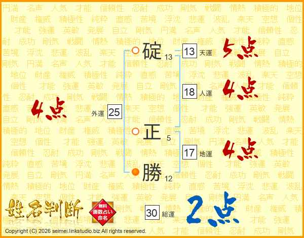 碇正勝さんの天運は13画の5点!