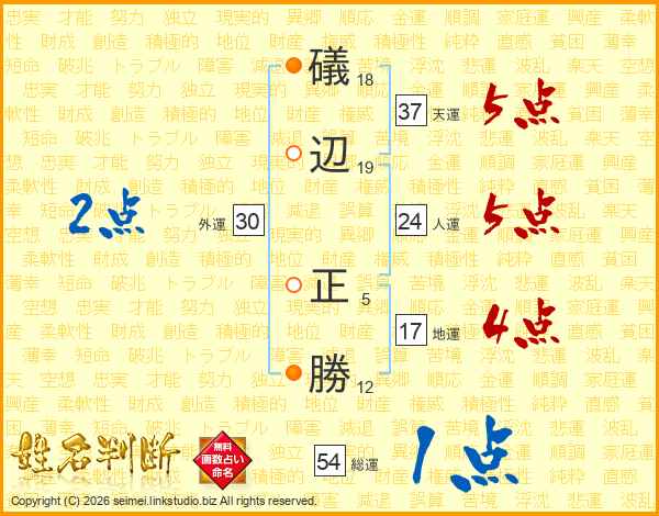 礒辺正勝さんの天運は37画の5点!