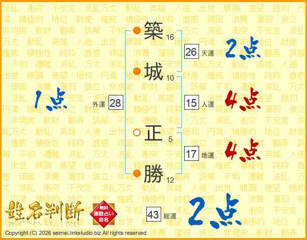 築城正勝さんの天運は26画の2点!