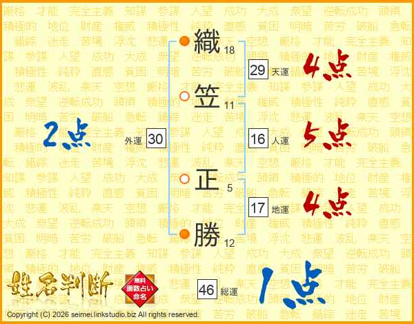 織笠正勝さんの天運は29画の4点!