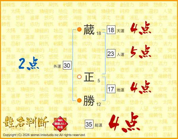 蔵正勝さんの総運は35画の4点!
