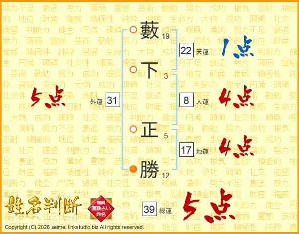 藪下正勝さんの総運は39画の5点!