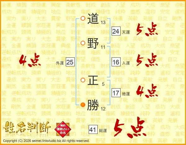 道野正勝さんの天運は24画の5点!
