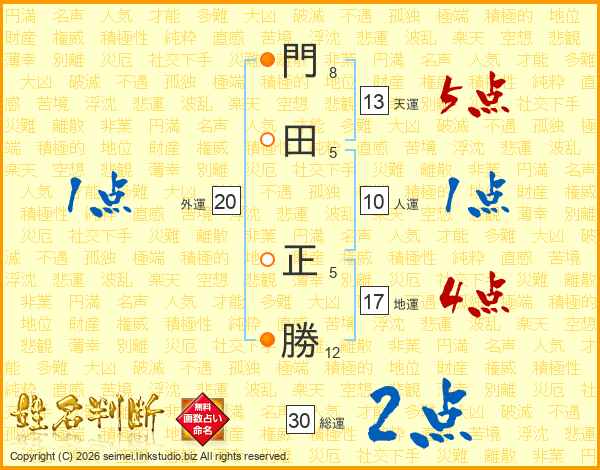門田正勝さんの総運は30画の2点!