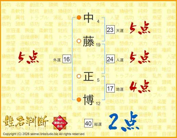 中藤正博さんの人運は24画の5点!